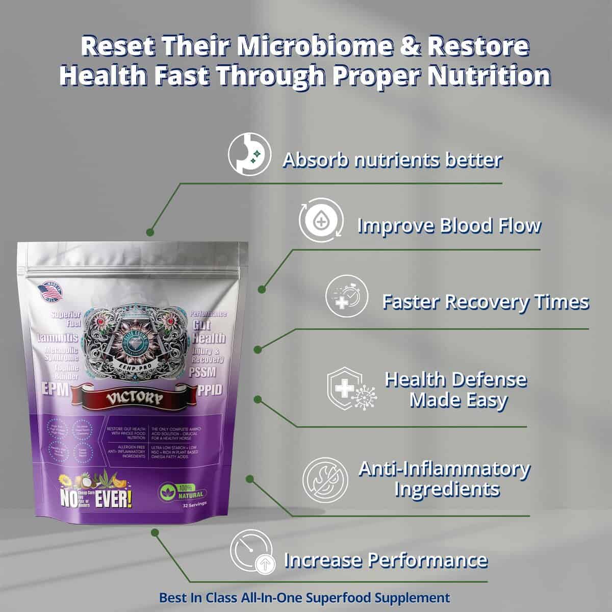 Why it works: Horses with severe issues need comprehensive support. Warhorse Protocol addresses gut bacteria (the root cause of ulcers), stress hormones (the root cause of anxiety), and nutrition (the foundation of healing)—all at once. It’s the fastest path to complete wellness.