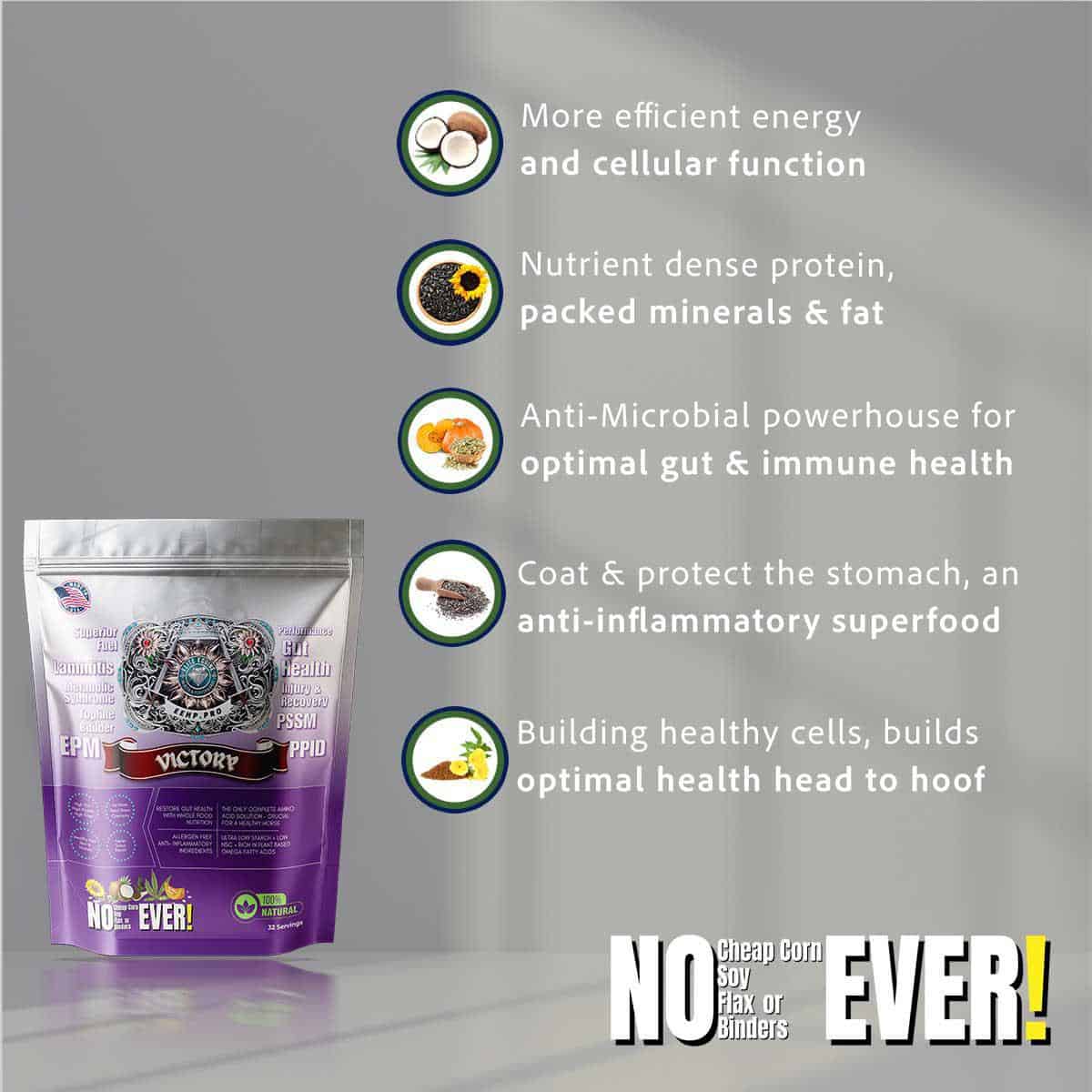 Our mare was diagnosed with Grade 2 ulcers and the vet put her on UlcerGard and other products. She did very well during the treatment; but after she finished the medication, she was back to her old self-not wanting to back in the roping box and rearing. The vet wanted to do another round of antacid; but after doing some research, I knew there had to be a better option. I found the Warhorse protocol and decided to give it a try. We have transitioned all 3 of our calf horses over to the Ulcer Defense and Victory. We slowly introduced our mare back to the roping box and she is back to her calm self. I am so happy I found the Victory and feel so much better feeding our horses this instead of the grain overload. And actually we our saving money compared to supplements, grain, and UlcerGard.